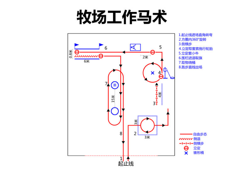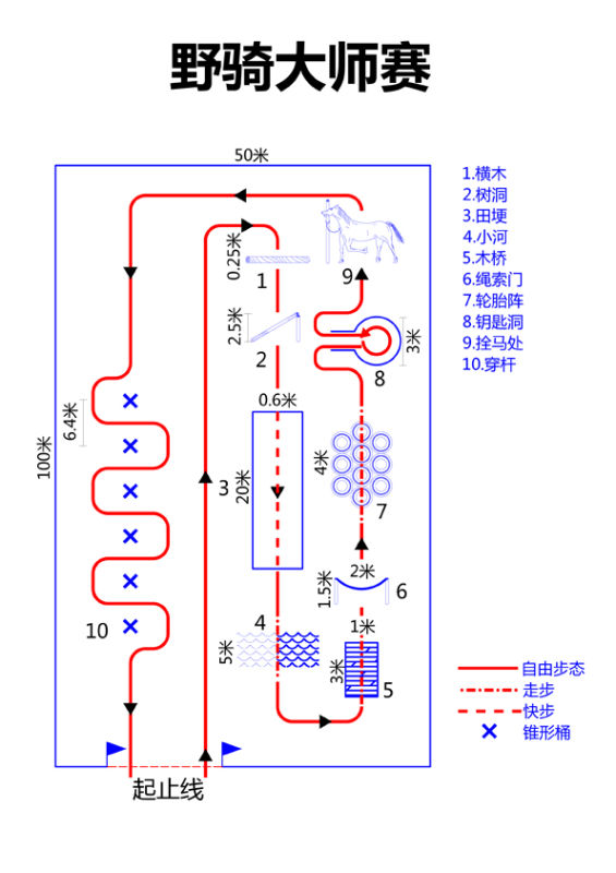 参加比赛的所有选手自带马匹参赛。每匹马在同一场比赛中只允许参赛一轮,但骑手可以换马参赛多轮比赛。