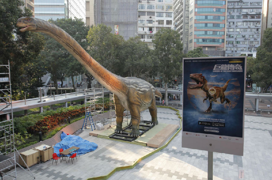 “香港赛马会呈献系列-巨龙传奇”展览,是该系列本年度第三个展览,由11月8日至明年4月9日,公众可于香港科学馆欣赏逾百件珍贵化石标本和展品,如巨型汝阳龙的巨大椎骨化石。六只巨大机械恐龙的装置工作于今天(10月25日)完成。是次户外展出的巨型机械恐龙,包括两只翼龙,以及一家三口的剑龙;另外,最瞩目的是一只长三十米、高十米、头和尾都能摆动,又会发声的炳灵大夏巨龙。如此巨大的机动恐龙作户外展出在港实属首次。