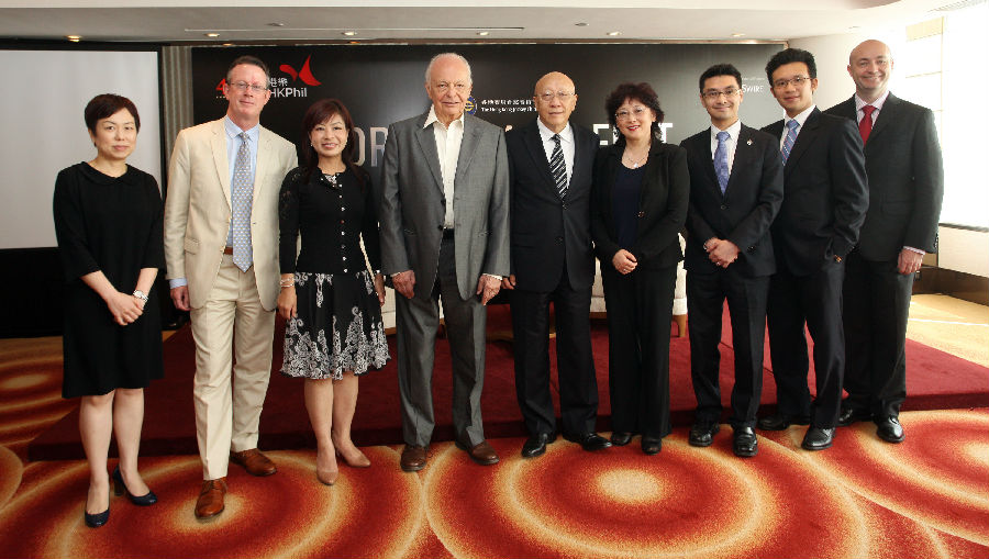 香港赛马会慈善项目主管陈淑慧女士(左三)、世界著名指挥大师马捷尔(左四)、港乐董事局主席刘元生先生(中)、行政总裁麦高德先生(左二)及其他嘉宾合照。