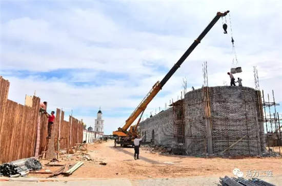 6月20日,记者在中蒙国际马术演艺基地看到,该基地的提档升级工程已接近尾声,工人们正紧锣密鼓地进行作业,基地四周充满复古风格的城墙拔地而起,场景相比去年更加震撼和壮观。据市旅游局负责人介绍,外围围墙框架基本完成,工程量已经完成80%以上,舞美、灯光设备正在采购,演员和马队正在排练大型历史实景剧《天骄传奇》,该剧预计于7月1日与观众见面。