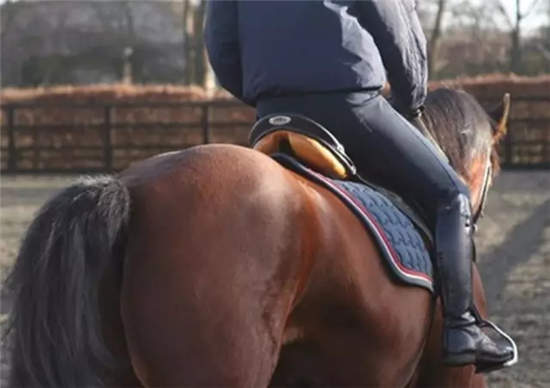 有可能是骑手坐上马背时因坐姿问题导致体重分布不均,或马匹自身背部的原因。那么在马匹背部的某些部位就会完全没有承载压力,因为马背是中空的,而不是圆的。造成干斑的原因是有很多因素,但压力分布不均需要格外注意。