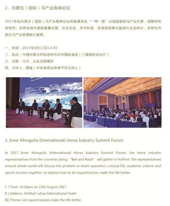8月12日,2017内蒙古(国际)马产业高峰论坛将在呼和浩特举行。