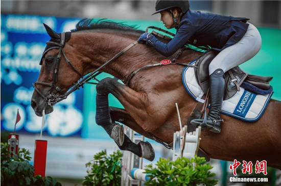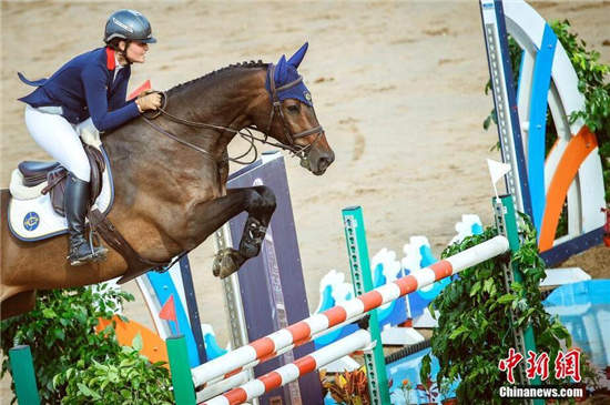 香港队骑手黎嘉怡在比赛中,最终她晋级了马术场地障碍个人决赛。当天,第十三届全运会马术项目比赛在天津环亚马球公园拉开战幕。