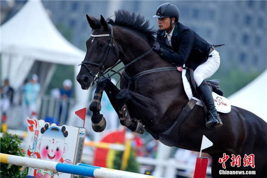 8月29日,第十三届全运会马术比赛首日,场地障碍个人资格赛和场地障碍团体赛在天津环亚马球会举行。