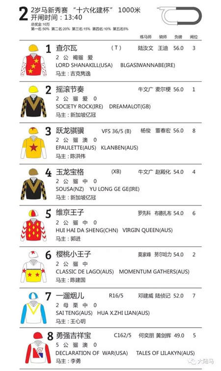 13:40 第二场 2岁马新秀赛 “十六化建杯” 1000米;