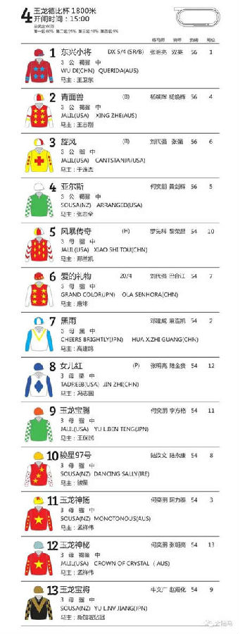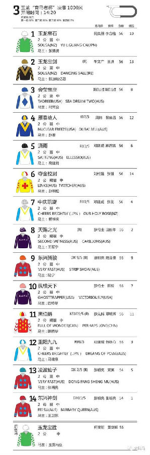 14:20 第三场 玉龙“育马者杯”决赛 1000米;