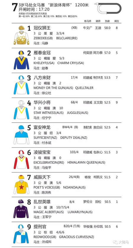 17:20 第七场 3岁马处女马赛 “新浪体育杯” 1200米;