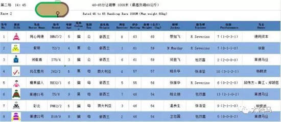 第二场:14:15 46-65分让磅赛(最高负磅60公斤)1000米