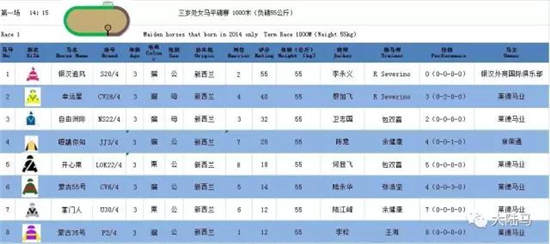 第一场:14:15 三岁处女马平磅赛(负磅55公斤)1000米