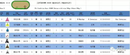 第五场:16.15 三岁马条件赛(胜出58公斤,未胜出55公斤)1500