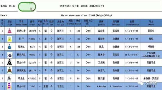 第四场:15:45  四岁及以上公开赛(负磅≥50公斤)2300米