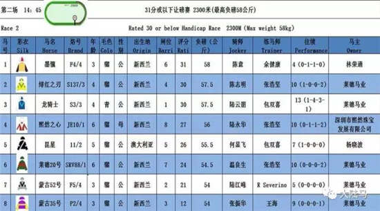 第二场:14:45  31分或以下让磅赛(最高负磅58公斤) 2300米