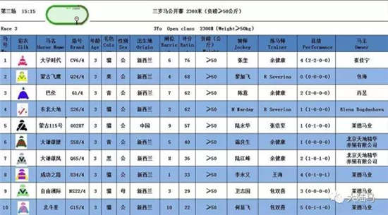 第三场:15:15  三岁马公开赛(负磅≥50公斤)2300米