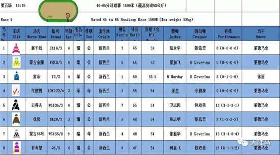 第五场:16.15  45分—65分让磅赛(最高负磅58公斤)1500米