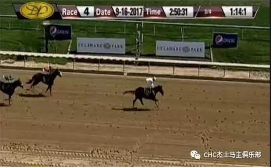 9月16日,美国特拉华赛马场举办的初赛定价赛(Maiden Claiming),比赛途程为1600米。来自CHC杰士马主俱乐部的赛驹“独奏家”(Soloist)在比赛最后一段从外围奋力赶超冲刺,最终在终点线之前领先,一举以三个马位拔得本场比赛的头筹,拿下6300美元(约4.1万元人民币)的奖金。