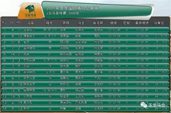 玉龙国际赛马公开赛第13赛事日于9月23日下午14:30开赛,共有五场精彩比赛上演,最终五场比赛分别由“富安飞龙”、“凌波仙子”、“开元盛世”、“雁春花酿”、“宾利”荣登榜首。大陆赛马网携手阿里体育/优酷体育继续对赛事进行视频实时直播,同时大陆马旗下的青马商城的“看直播·猜头马·中大奖”活动依然火爆进行,派奖积分于赛事日结束后次日12:00前在青马商城公布。