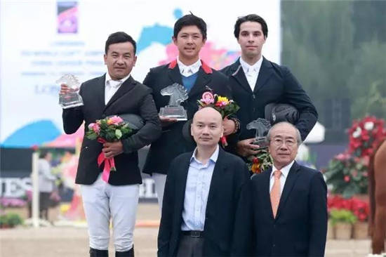 10月7日日北京气温骤降,飘有小雨,但赛场上的激情和观众的热情却丝毫未减。2017浪琴表国际马联(FEI)场地障碍世界杯-中国联赛总决赛第三比赛日,重头戏145-150CM世界杯资格赛爆出冷门,并不在积分榜前十名的额尔登吉日嘎拉抢得资格赛头名。而在稍早时候,100-110CM分段赛和120-130CM速度与技巧赛的独特赛制为观众带来了新鲜的感官享受,130-140CM俱乐部团体及个人赛也进行了第一轮比拼。