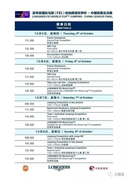 马术世界杯比赛第三天,硝烟味渐起,相信众骑手已经在训练和比赛中将自己和马匹调整到了最佳状态。2017浪琴表国际马联(FEI)场地障碍世界杯-中国联赛总决赛年度总冠军,将于明天出炉。马术比赛的一大魅力,就在于其不确定性,看似很大的积分差距,有时一场比赛就能够反超。理论上来说,每一位骑手都有机会冲击总冠军。有一分希望,就要做十分努力,让我们一起期待10月8日这场精彩刺激的对决。