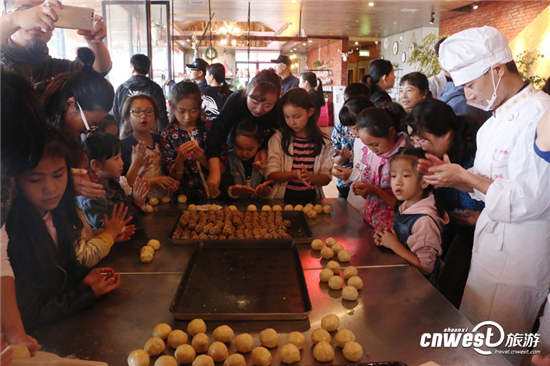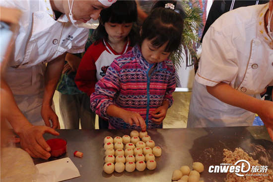 在活动现场,孩子们跟着德懋恭的师傅们学习制作月饼,一会将手中的面团揉圆,一会给水晶饼上盖章,不同的制作步骤深深吸引孩子们的目光。来自澳大利亚的肖德华和妹妹肖雅莹吃着手中的月饼说,“第一次吃到亲手做的月饼,我们在水晶饼上面盖章,看马术表演,认识了几个新朋友,感觉很好玩。”