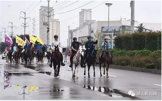 世界梨都,策马奔腾。10月6日,2017安徽砀山国际马术耐力赛将在砀山黄河故道正式开赛。今天,来自世界各地的30余组骏马、骑手以及两辆马车亮相砀山街头。一路上,潇洒帅气的骑手,高大俊朗的马匹,整齐有序的马队,引来众多市民驻足观赏。