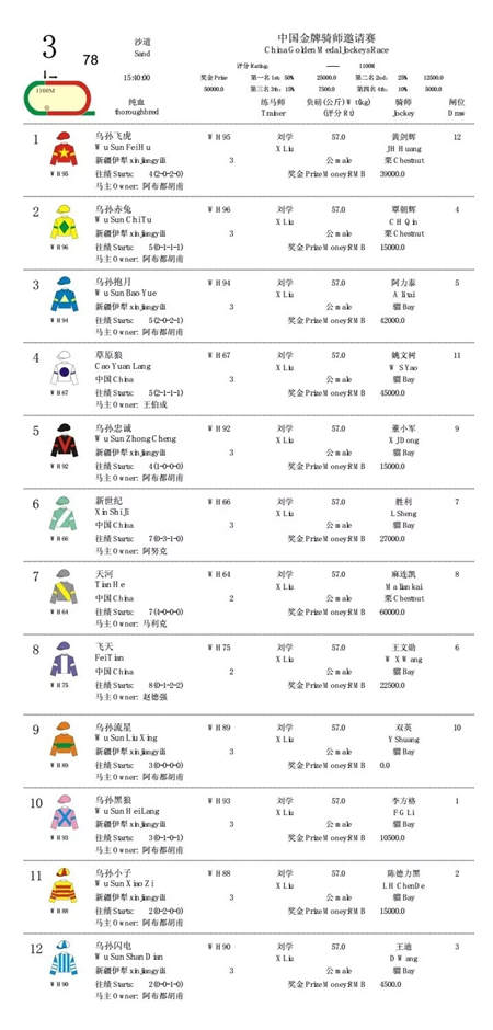 中国金牌骑师邀请赛,是本届赛马节参赛骑手均是现今速度赛马的顶尖高手,他们是中国马协举办的年度各类赛事的冠军和武汉速度赛马公开赛的胜出选手,14名冠军骑师厉兵秣马将争夺金牌骑师邀请赛,谁将夺得“2017金牌骑师”桂冠,拭目以待!