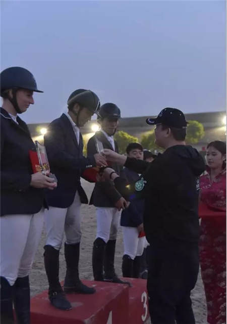 60-90CM级别障碍赛的争夺中,来自上海爱久的何龙获得冠军,松声马术的谭浩和江苏海澜的章锶檑分列二三位。