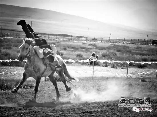 曾获得“甘肃省劳动模范”称号的第二代牧马人张明,喜欢烈马的天然野性,是一名驯马的行家里手。看他骑一匹“走马(训练有素的骑马)”,左手挥动马鞭,右手紧握套马杆,套住烈马“戴笼头”;牵着它紧跟走马蹓空趟,锉其锐气“挼性子”;然后佩上鞍韂戴上辔头,骑上去扬鞭催马“驯走手”;接下来阉割压马(蹓马)“踏走马”;最后修理马鬃、马尾、钉马掌、烙印记。再看他戴上毡帽,穿上马靴、马裤,跨上马鞍,踩上马镫,拉住缰绳,勒住辔头,甩开马鞭,驰骋草原,雄姿英发,矫健如飞。如此训练出的烈马,才能真正成为一匹体形匀称彪悍雄健、立马昂首嘶鸣如雷贯耳、快走腾空而起风驰电掣、慢走落落大方四平八稳的好“走马”。