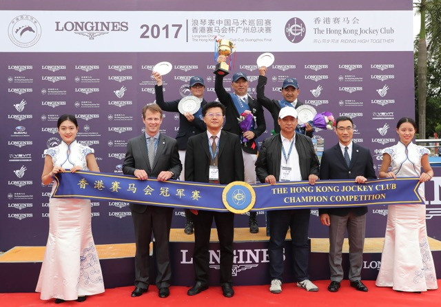 “浪琴表中国马术巡回赛”的压轴赛事“香港赛马会杯广州总决赛”,11月18日在广东省黄村体育训练中心内的香港赛马会国际马术场举行,共十八名海内外骑手参加,结果由内地骑手刘同晏和乔仑巴特在香港赛马会杯冠军赛分别夺得第一名和第三名。而第二名则由年轻的比利时骑手乔琳梅哈特夺得。