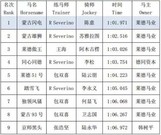 第一场:2岁马公开赛1000米
