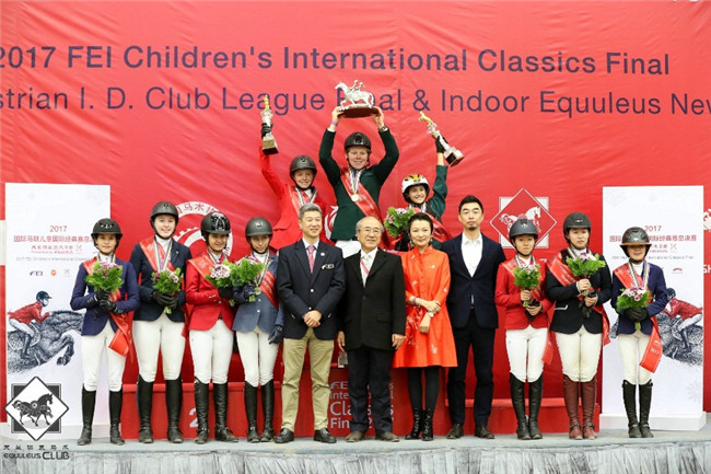1月1日,2017国际马联儿童国际经典赛总决赛(天星调良马术呈献)(FEI ChIC Final 2017 presented by Equuleus)完美收官。20名来自全球9大马术区、13个国家和地区的12-14岁马术明日之星各显神通,他们对马术的热爱和专注,诠释了马术运动人马合一的理念和精神。在当天的总决赛中,巴西骑手菲利普·格林利斯(Philip GREENLEES)取得冠军,墨西哥骑手玛雅·因斯·丹尼斯·尚邦(Maya Ines DENIS CHAMBON)取得亚军,巴西骑手彼得拉·卡罗林纳·马努奇·比佐迪(Pietra Carolina MANUCCI BIZZOTTO)取得季军。