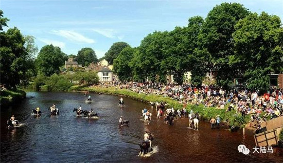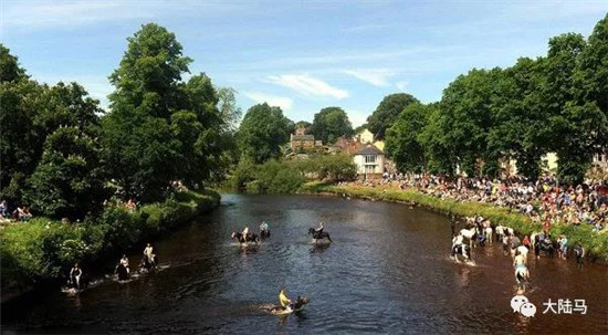 在一年一度的英国阿普比马匹交易会上,吉普赛马主会延续古老传统,骑马过伊登河为马清洗,以便卖出个好价钱。