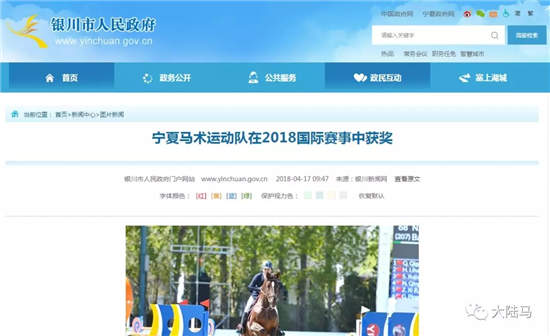 宁夏政府网关注宁夏马术队在2018以纯金伯乐国际马术大奖赛获奖