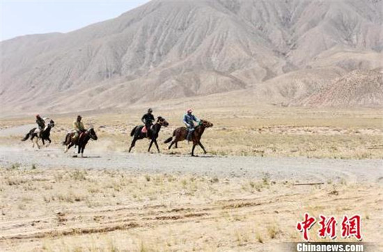 图为骑手们策马奔腾在戈壁滩上。乌仁花摄