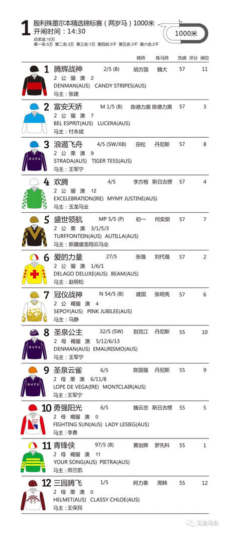 本周六「玉龙国际赛马公开赛2018」将迎来第4赛事日,即“殷利殊墨尔本精选锦标赛马日”。当天将有5场精彩比赛,54匹优骏将争夺37万赛事奖金。其中,第1场为“殷利殊墨尔本精选锦标赛(两岁马)”,12匹澳洲赛驹将一展身手,精彩程度可想而知!