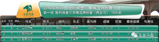 第1场 殷利殊墨尔本精选锦标赛(两岁马),途程:1000米,奖金:10万元
