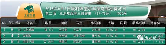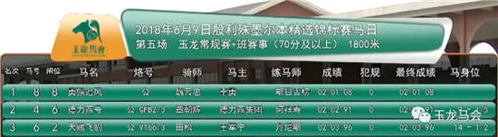 第5场 玉龙常规赛二+班赛事(70分及以上),途程:1800米,奖金:10万元