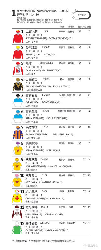 第1场 新西兰杯纯血马公司两岁马锦标赛