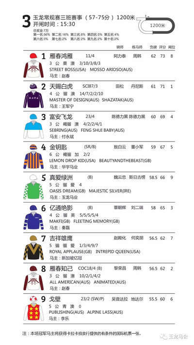 6月16日,“玉龙国际赛马公开赛2018”将迎来第5赛事日,即“新西兰杯赛日”。比赛当天5场比赛,61匹赛驹将向32万元赛事奖金发起冲击。