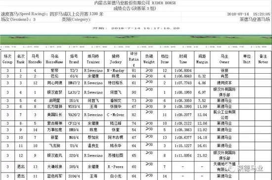 第二场:三岁马公开赛1200米