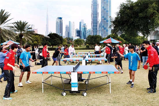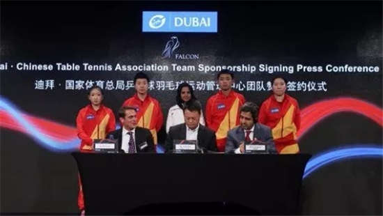 两国之间运动方面的合作更加促进两国之间的联动关系,2013年,迪拜宣布将以城市为单位对中国国家乒乓球队进行赞助,这无疑彰显出国球日趋国际化的发展趋势。中国国家乒乓球队的球衣上史无前例的出现迪拜的字样。除此之外,含有迪拜字眼的图案也将出现在中国乒乓球队的短袖、宣传材料以及男女运动员在参加国内外比赛的衣服上。
