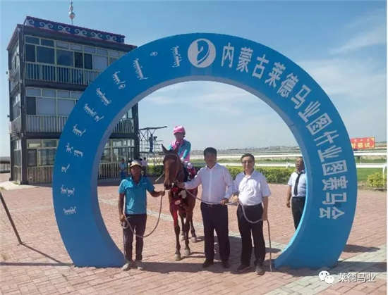 在“莱德育马者杯”持续进行的热烈氛围中,白玉刚部长接受郎林董事长邀请,与获胜运动员和马匹合照冠军照。