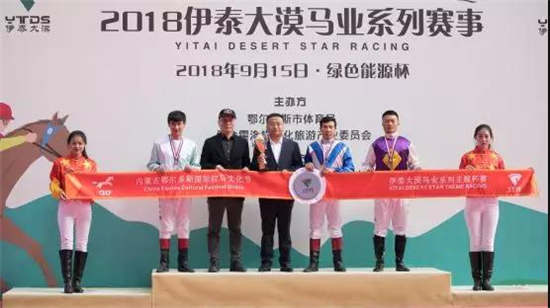 9月15日,在鄂尔多斯的湛蓝天空下,宏伟壮观的伊金霍洛旗赛马场迎来了伊泰大漠马业“绿色能源杯”四场精彩的纯血速度赛马比赛。本次赛事由鄂尔多斯市体育局和伊金霍洛旗文化旅游产业委员会主办,内蒙古伊泰大漠马业有限责任公司承办,也是历时四个月的伊泰大漠马业“三杯一节”系列赛事收官之战。因为此次赛马日会决定年度最佳赛马、最佳骑师、最佳练马师的归属,每场比赛的争夺可谓达到白热化,现场和收看直播的海内外观众大饱眼福。