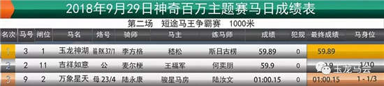 冠军:“玉龙神湖” 马主:嵇松 骑师:李方格