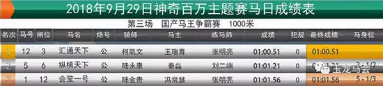 冠军:“汇通天下” 马主:王瑞青 骑师:柯凯文