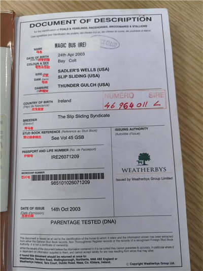 在申请马匹登记,填写登记申请表时需要的马匹信息一般包括其父母的名字、出生日期、性别、毛色等。这里父母的名字一定是其在登记会申请到(马匹护照上)的名字。从中国的,甚至是日本的护照上很容易就能找到我们所需要的信息,那么其他国家的护照该怎么去看呢?