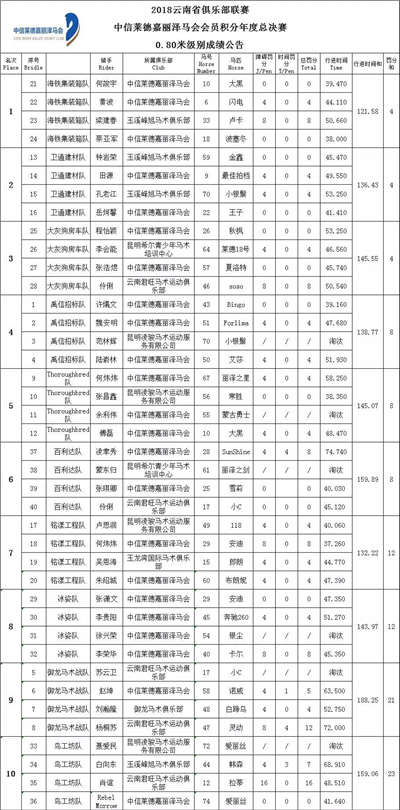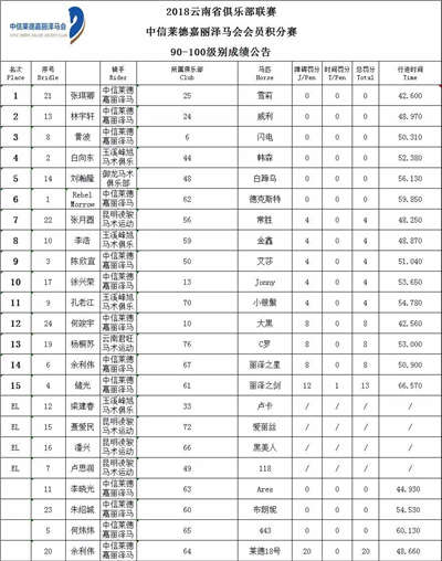 12月23日下午17:00赛事圆满结束。此次赛事云南各马术俱乐部战报汇总个如下——