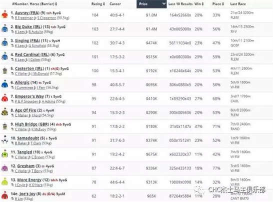 下午5:10分,玫瑰岗赛马场即将上演帕拉马塔杯(Paramatta Cup,途程1900米、奖金14万澳币约67万人民币)的比赛,CHC旗下赛驹“奥夫雷”(Auvray)将出战本场赛事。值得一提的是,“奥夫雷”将与多达13匹赛驹同场竞技。