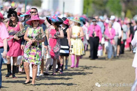 美国的大赛中也不乏女士日,最著名的莫过于肯塔基橡树赛(Kentucky Oaks)。橡树赛必须由雌马参赛,大家或许还记得在2017年肯塔基橡树赛中,骑师们身穿粉色马裤驰骋赛场,最终CHC杰士马主俱乐部旗下赛驹“探险家”(Abel Tasman)在这场途程1800米、奖金100万美元(约617万人民币)的比赛中夺冠,成为143届美国橡树大赛历史上首个登上冠军领奖台的华人赛马团体。