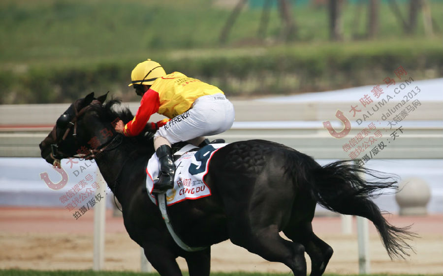 罗伊斯顿·法兰奇策骑马匹“宣言报”成都迪拜国际杯赛马“温江速度赛”夺冠