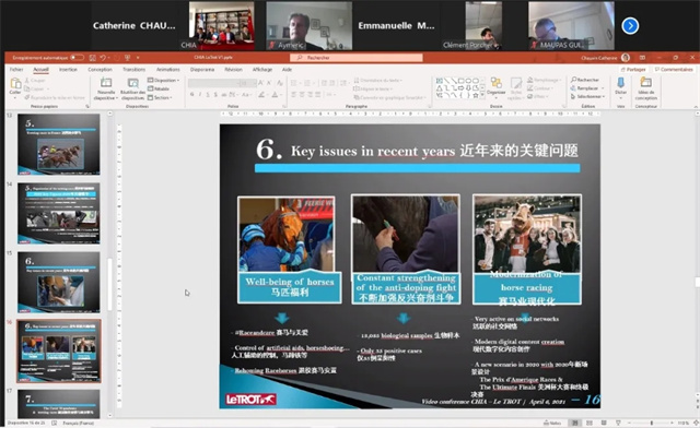 4月6日,中国马会代表同法国赛马产业界代表举行网络会议。双方就加深中法赛马业交流,拓展两国赛马赛事合作,推动中国赛马产业进一步发展等内容进行了交流商讨。